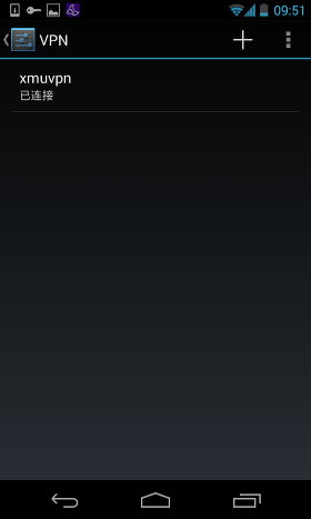 连接成功后,xmuvpn下会显示己连接,同时屏幕顶端的状态栏中也会有一个钥匙的图标出现。