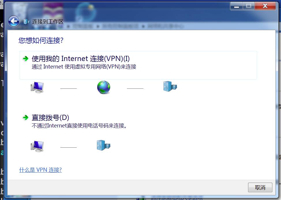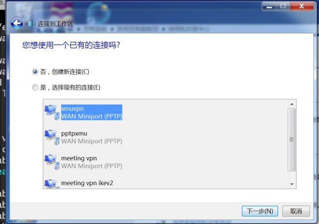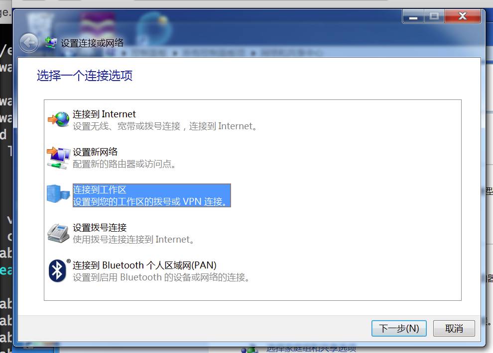 第三步,选择“连接到工作区……VPN连接。”;