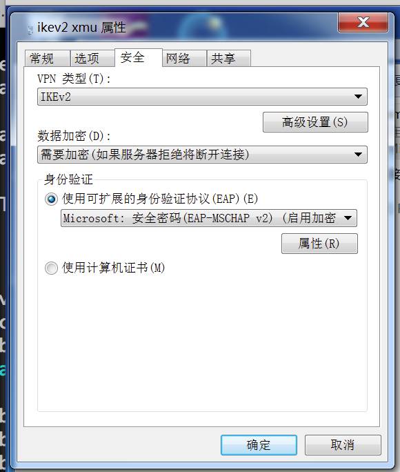 第十步,按下图设置好VPN的“安全”属性;确定;