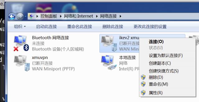 设置好之后,需要连接VPN时,鼠标左键点击任务栏的网络连接小图标,再双击已设置好的VPN连接(如ikev2 xmu),即可接入厦门大学校园网,免费访问学校图书馆丰富的网络信息资源了