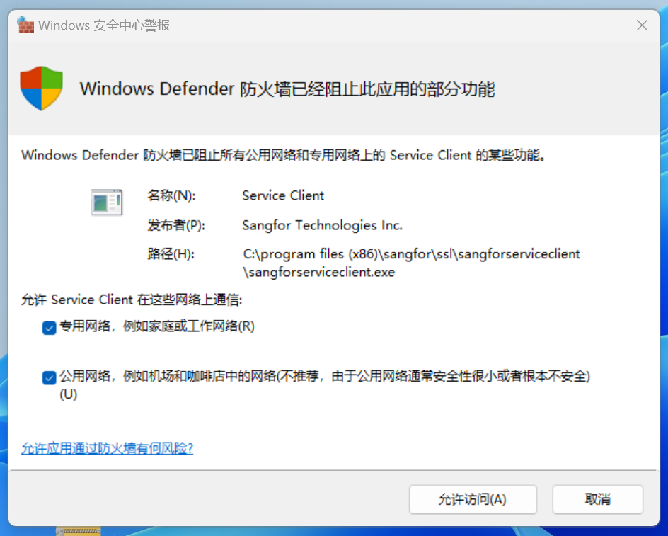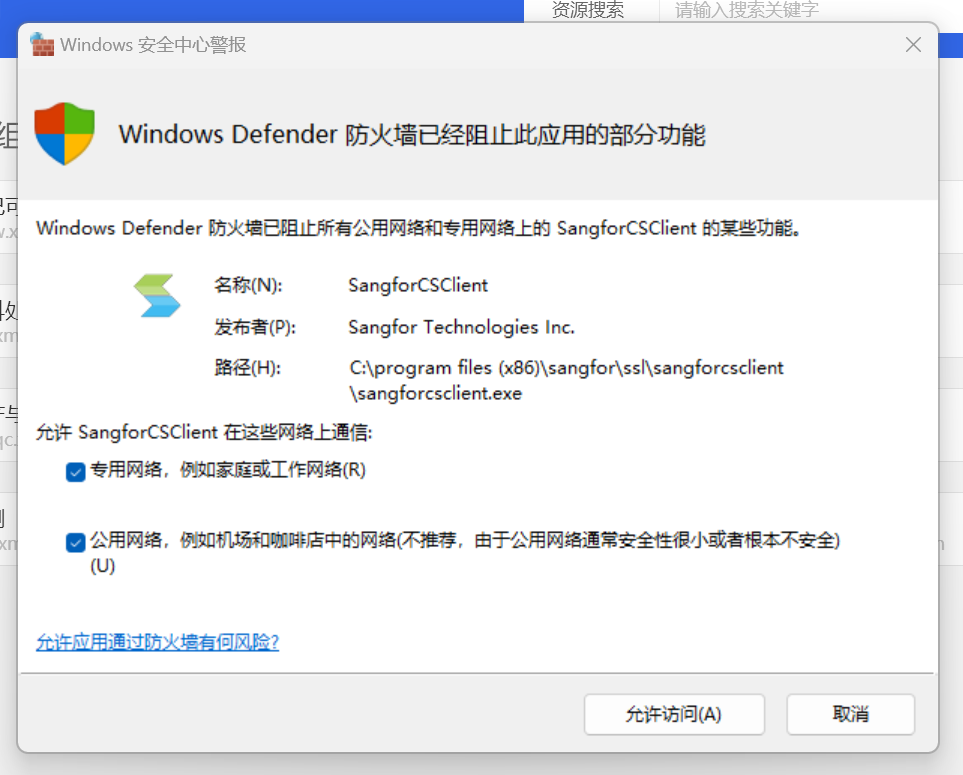 首次运行可能会需要允许程序通过防火墙,允许即可: